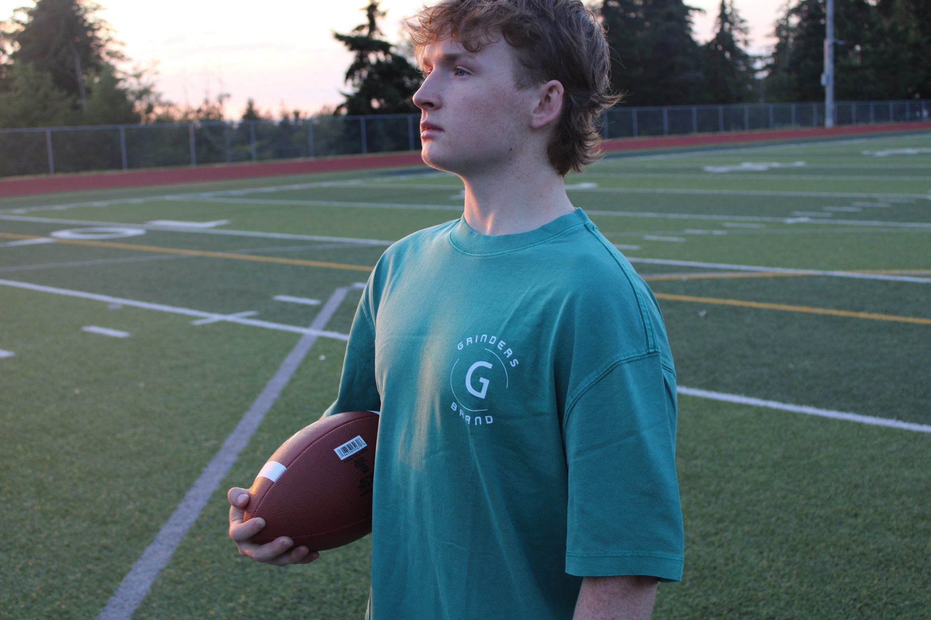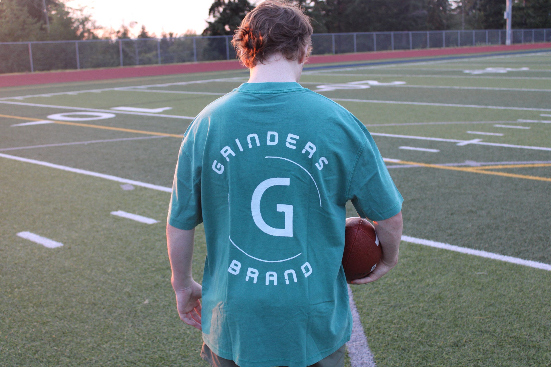 Introducing the Grinders Brand Teal Hard Work Tee – where classic style meets premium comfort. Its relaxed fit ensures maximum comfort, perfect for everyday wear or a casual night out. The crisp, white logo stands out beautifully against the rich teal fabric, making a bold statement without being overly flashy. Whether you're pairing it with jeans, shorts, or layering under a jacket, this versatile tee is a must-have addition to any wardrobe. Elevate your casual look with the timeless appeal of the Grinders Brand Teal Tee.